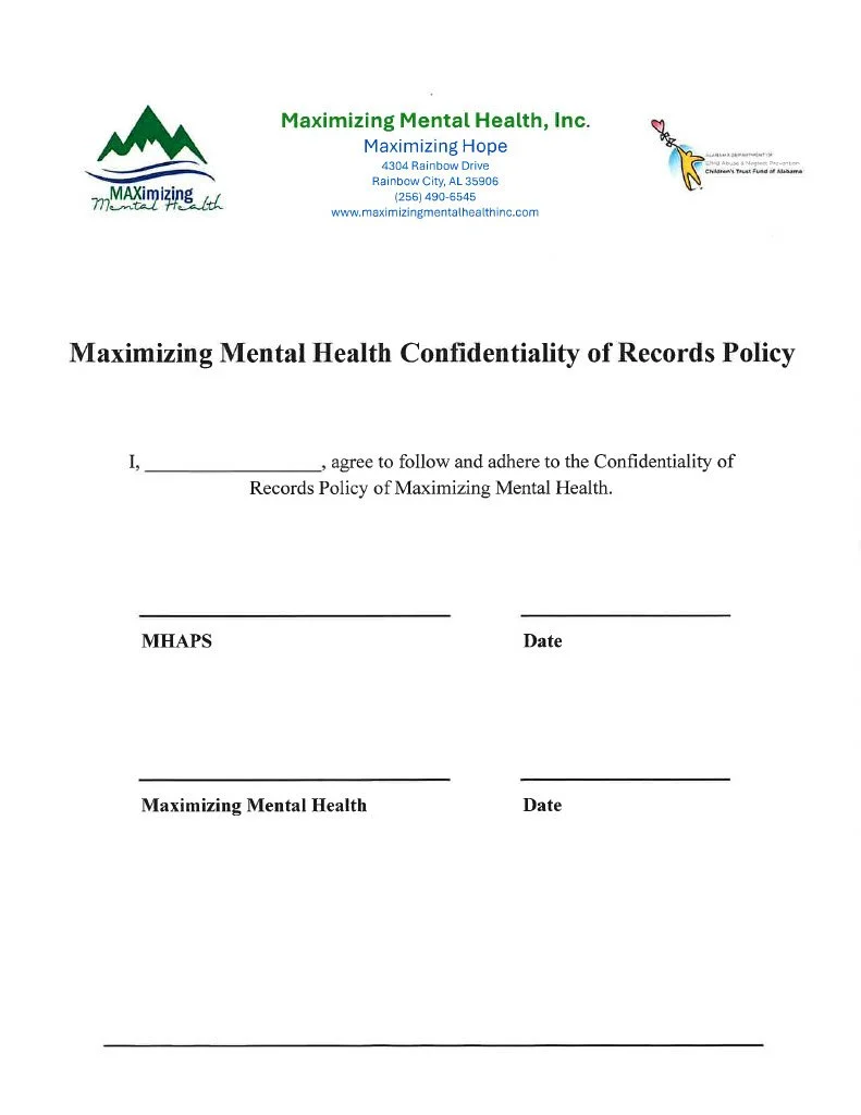 Mental Health Services Confidentiality, Consent, & Reporting Forms: Designed and drafted confidentiality, consent, and reporting forms for a student mental health service.