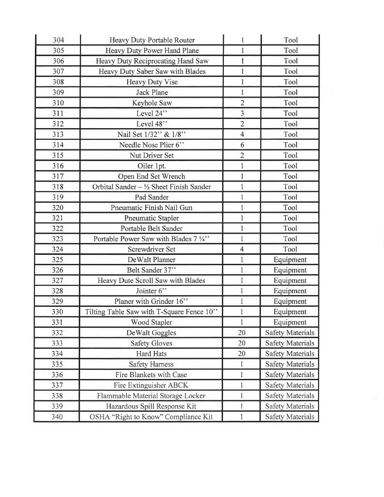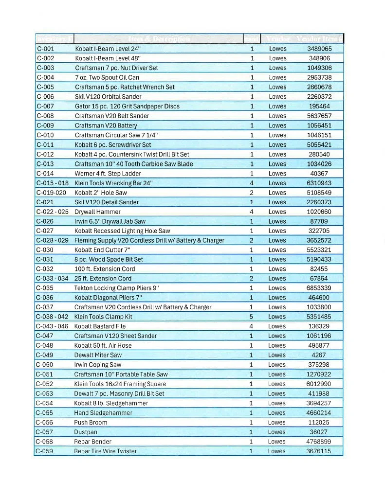 School Carpentry Inventory: Listed inventory of items purchased for a client school’s carpentry program, assigned ID numbers, and visited each program to physically assign stickers for each item’s corresponding ID number.